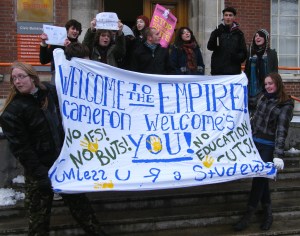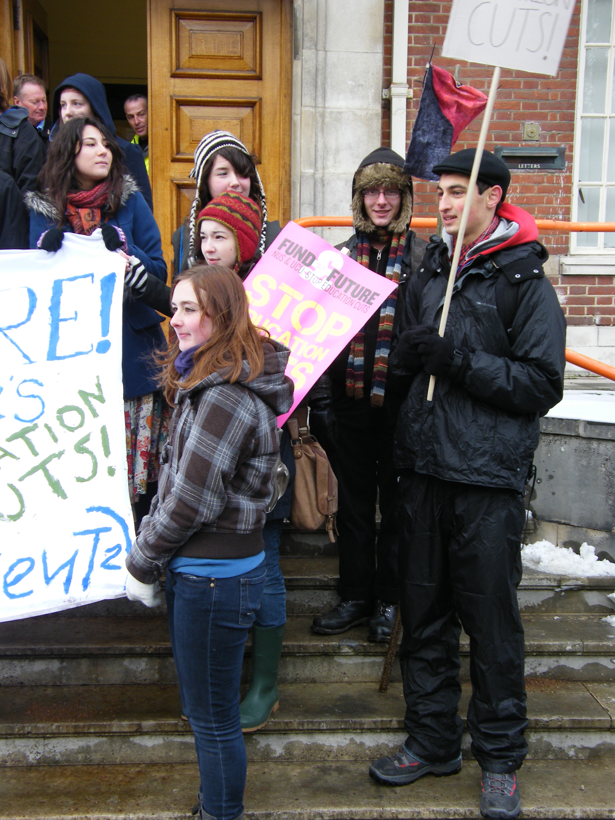 Here are some pictures of students calling on the Council to oppose the increase in tuition fees. They managed 140 outside the New College last week, but obviously the bitter weather deterred most of them. Some of those present are in receipt of the Education Maintenance Allowance, which the government is closing to new applicants in January of next year. Anger at the Lib Dem’s breaking of their promise to oppose fees increases was a source of particular anger amongst them. “We don’t want liars in government”, said one of the organisers. There was also a strong sentiment that education should not be for only those who are well off.