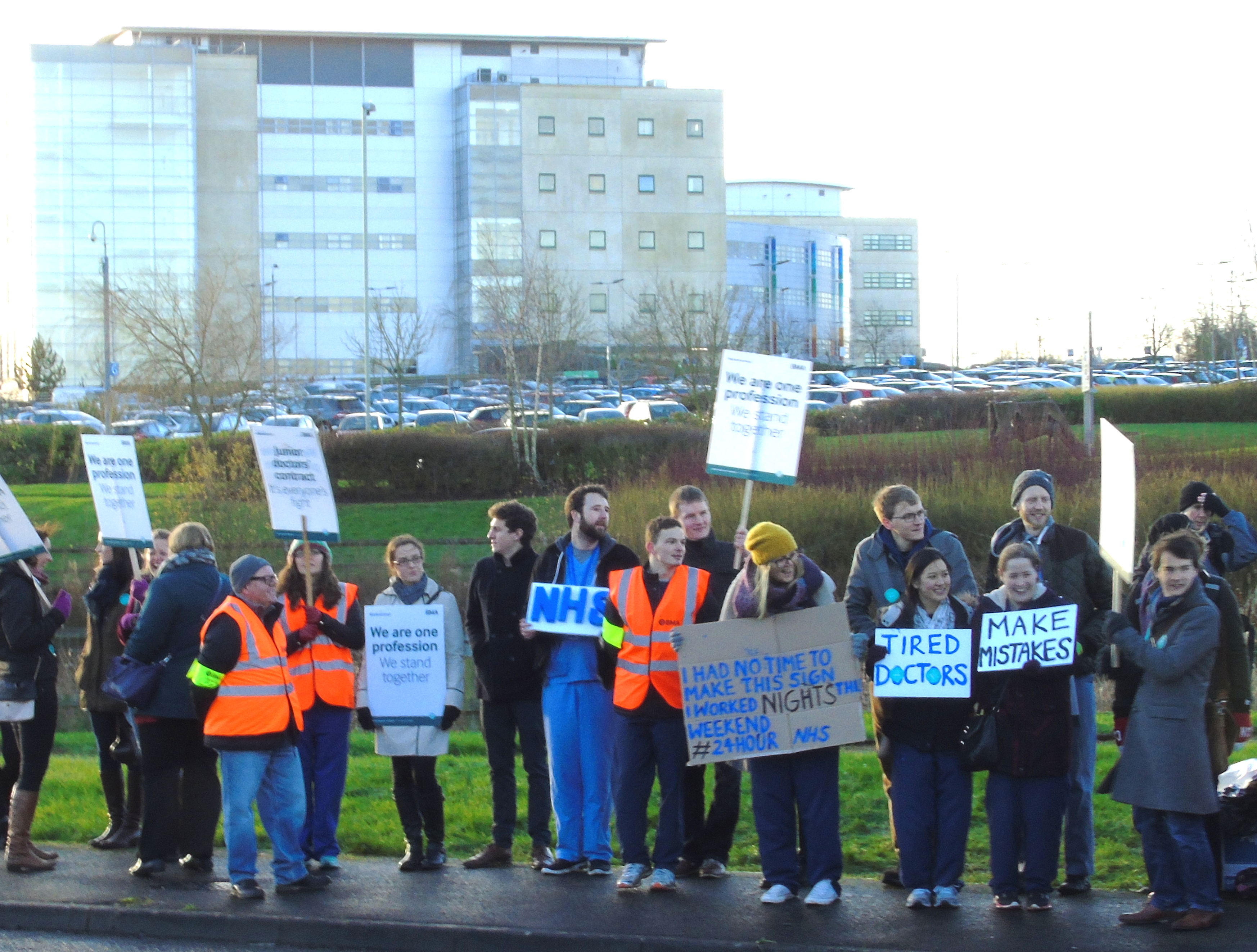 BMA strikers in Swindon martinwicksJanuary 12, 2016Uncategorized Post navigation PreviousNext A few photos from today’s picket line in Swindon at the Great Western Hospital. A patient showing support. And Swindon People’s Assembly. Share this:Share Click to share on Facebook (Opens in new window) Facebook Like Loading... Related
