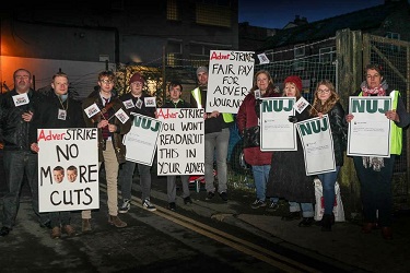 Congratulations to the Adver journalists on having the courage to take industrial action. For the younger ones amongst them this will be the first time they have taken strike action. They would not have done so without having genuine grievances. Sometimes you have to act against over-mighty management or they will continue to take advantage of you. You have to act together and stick together to improve your wages and your working conditions.